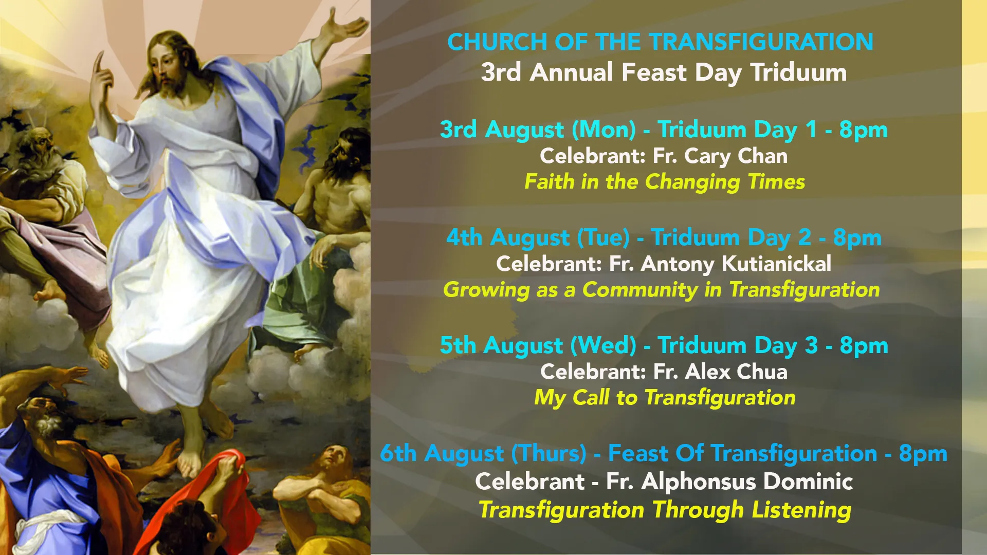 august, 2020 COTT 3rd Annual Feast Day Triduum 3aug - 6aug 38:00 pmaug 6COTT 3rd Annual Feast Day Triduum8:00 pm - 8:00 pm (6) Time3 (Monday) 8:00 pm - 6 (Thursday) 8:00 pm CalendarGoogleCal