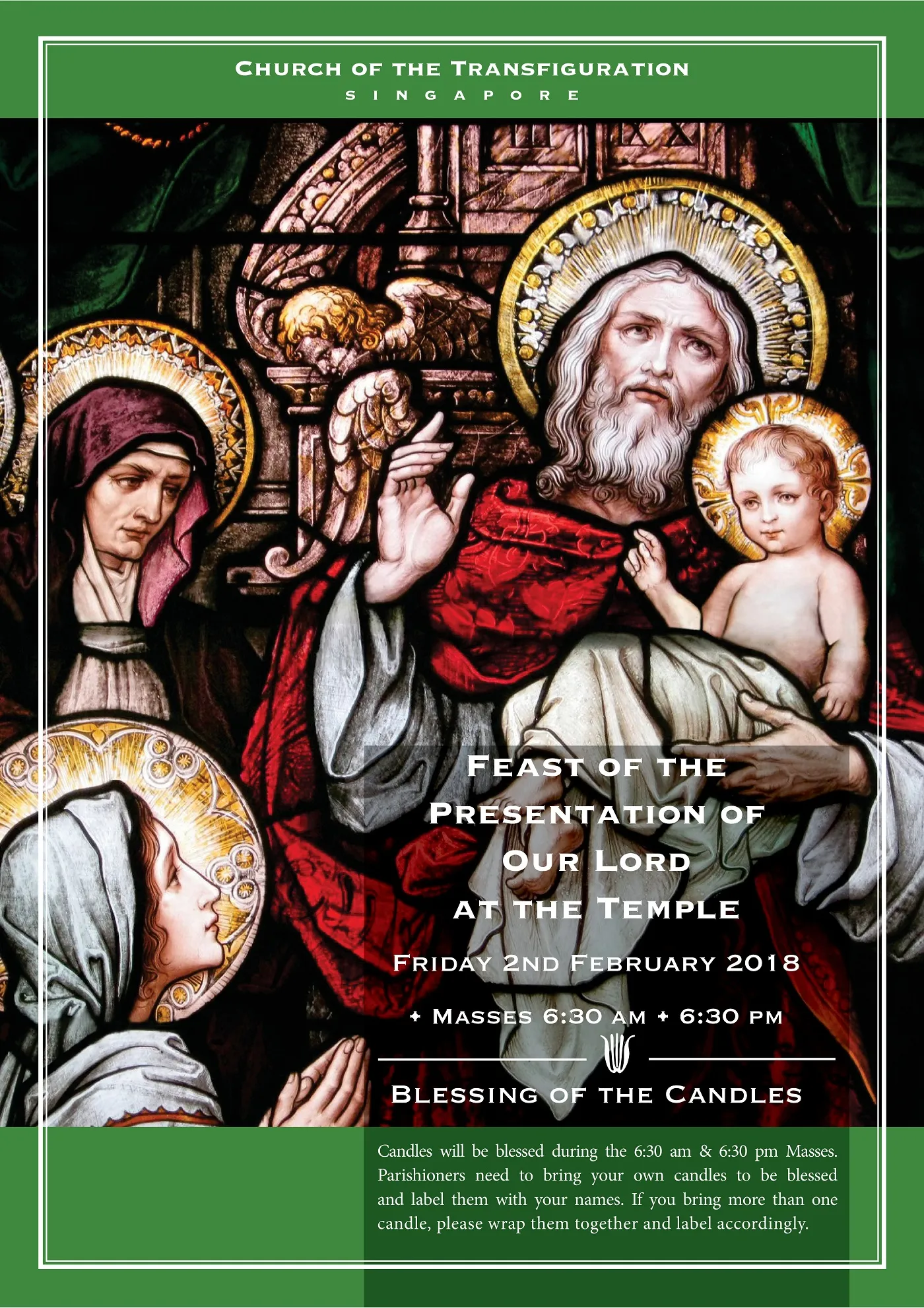 february, 2018 Feast of the Presentation of Our Lord at the Temple 2feb6:30 am- 6:30 pmFeast of the Presentation of Our Lord at the Temple6:30 am - 6:30 pm Time(Friday) 6:30 am - 6:30 pm CalendarGoogleCal