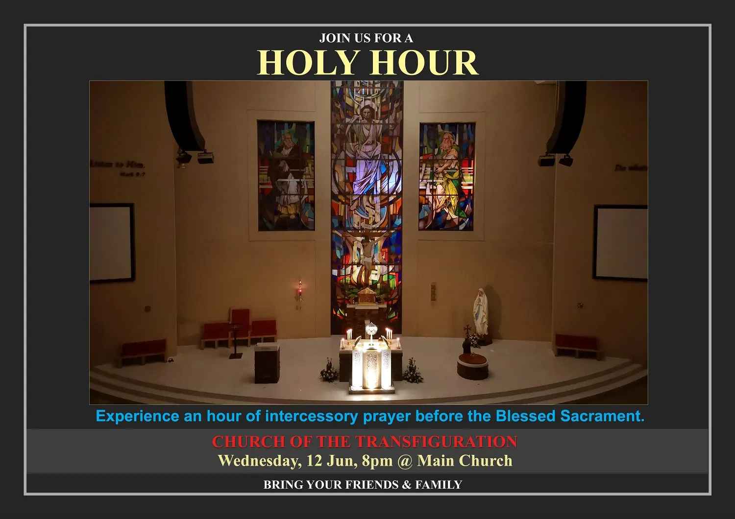 HOLY HOUR – WEDNESDAY, 12th June 2019 (due to Holiday on 5th June 2019)