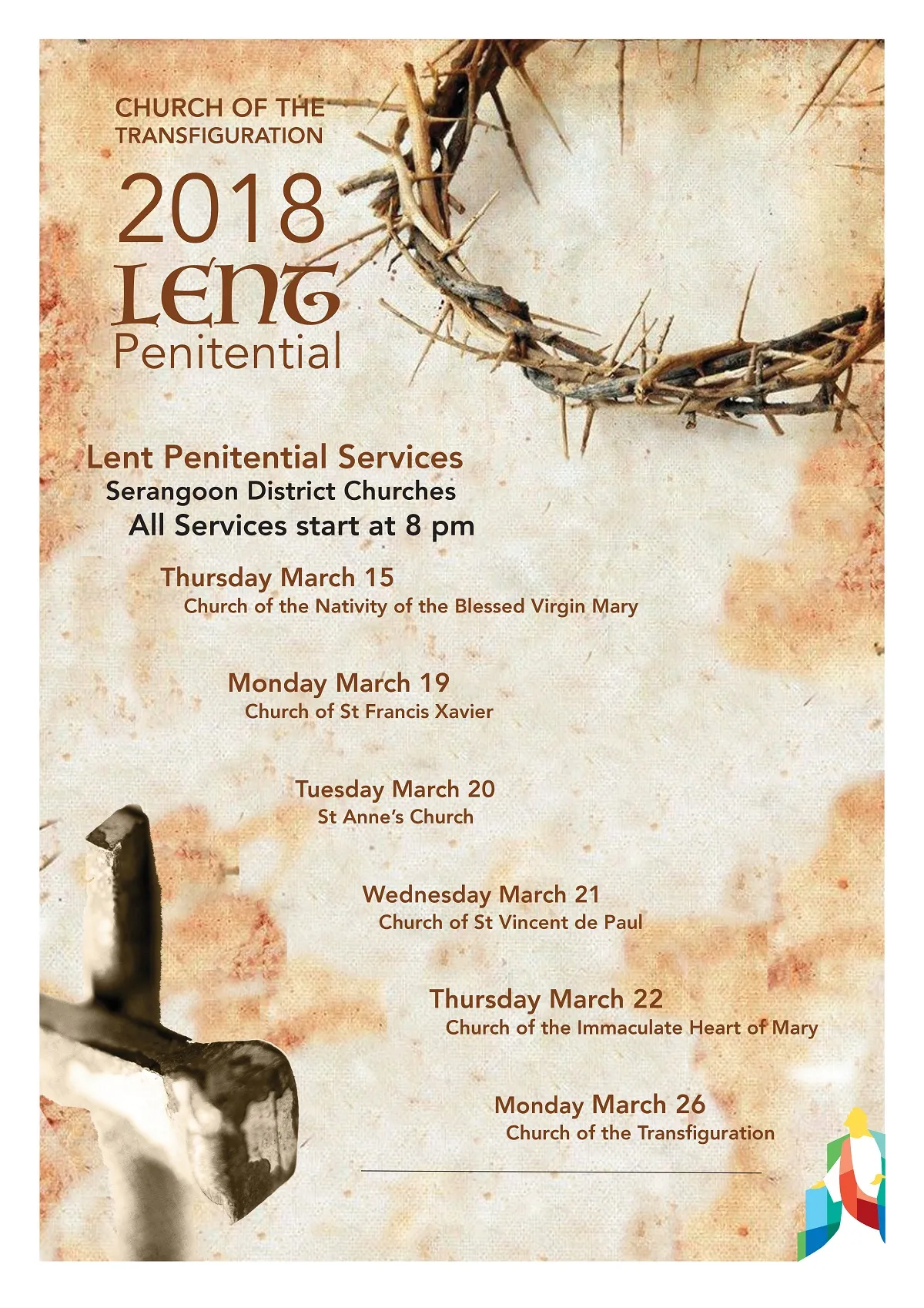 march, 2018 Lent Penitential Services 2018 15mar - 26mar 158:00 pmmar 26Lent Penitential Services 20188:00 pm - 8:00 pm (26) Time15 (Thursday) 8:00 pm - 26 (Monday) 8:00 pm CalendarGoogleCal