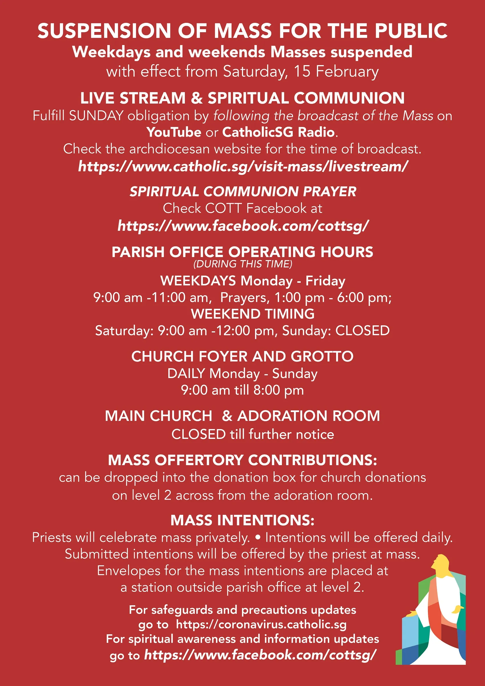february, 2020 Mass Suspension 15feb12:00 pmMass Suspension12:00 pm Event Details more Event Details Time(Saturday) 12:00 pm CalendarGoogleCal